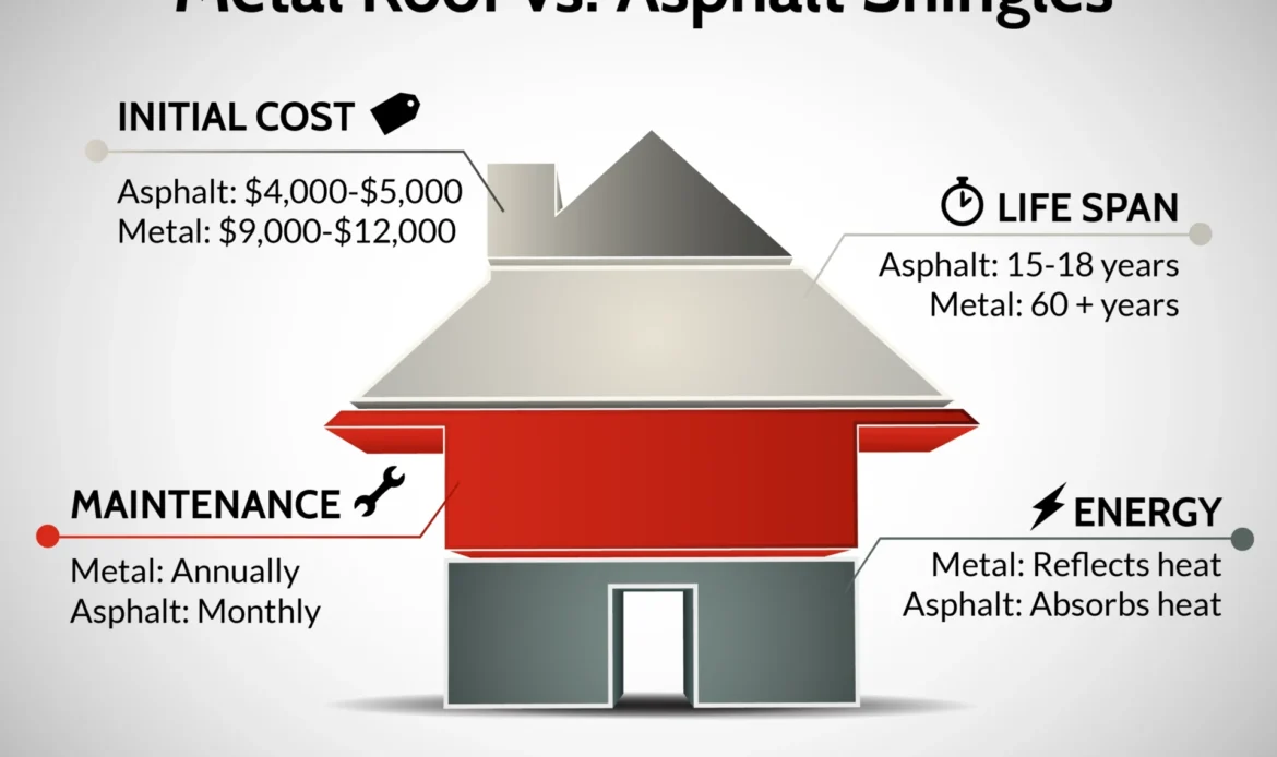 - Upfront cost: asphalt is lower; metal’s lifetime cost is often lower for long holds.
