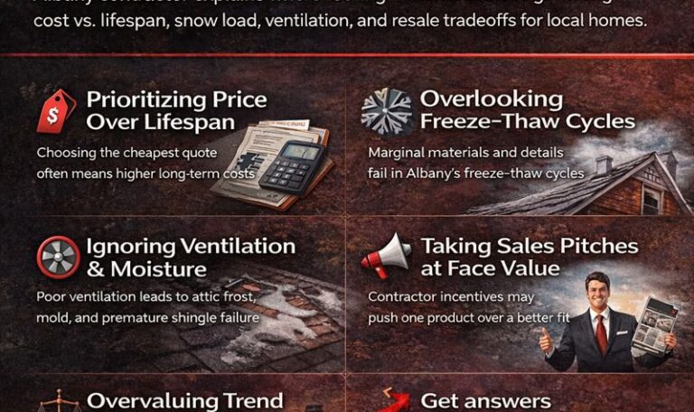 Summary Albany’s freeze–thaw cycles punish marginal materials and weak details Price-only decisions often ignore lifespan, maintenance, and resale realities Metal and asphalt both have myths; performance depends..